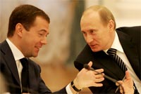 Wie erwartet hatte Medwedjew die russischen Präsidentenwahlen 2008 mit 70 Prozent der Stimmen haushoch für sich entschieden und Putin zum Ministerpräsidenten ernannt. Allerdings behielt Putin auch als Regierungschef mit seiner Hausmacht im Kreml und im Parlament weiter großen Einfluss. So blieben auch trotz des Wechsels im Präsidentenamt viele der Schlüsselfunktionen in der Regierung unverändert. Medwedew wurde von vielen nur als Präsident von Putins Gnaden angesehen. Putin selbst sprach von einem Tandemherrschaft zwischen ihm und Medwedew, wobei er letzteren als Juniorpartner bezeichnete.